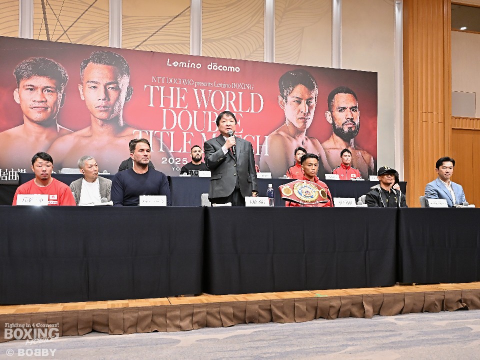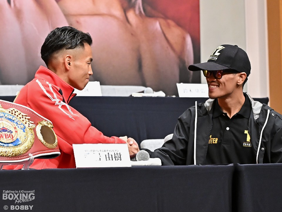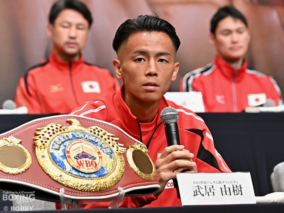 WBO(世界ボクシング機構)バンタム級タイトルマッチの記者会見が26日、横浜ベイシェラトンで行われ、王者の武居由樹(28=大橋)と同級8位のユッタポン・トンディー(31=タイ)が出席し、それぞれに意気込みを語った。