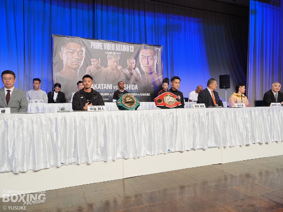 WBC(世界ボクシング評議会)チャンピオンの中谷潤人(27=M.T)とIBF(国際ボクシング連盟)チャンピオンの西田凌佑(28=六島)が6日、ボクシングの聖地・後楽園ホールで、バンタム級世界2団体王座統一戦の記者会見に臨んだ。