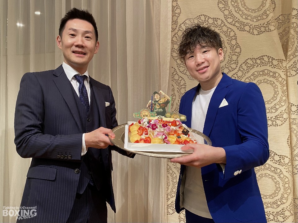 日本人世界チャンピオン同士の王座統一戦は、これまで井岡一翔vs八重樫東、拳四朗vs京口紘人、拳四朗vs阿久井と3度行われているが、そのうち拳四朗は2度、王座統一戦のリングに上がっている。祝勝会前に囲み取材に応じた拳四朗は、「やっぱり、王座統一戦は気合いの入り方が違う」と自身の経験を振り返りながら語ると、「(中谷が有利と言われているが)西田選手も気持ちが入っているので、そう簡単にはいかないと思う。間違いなく面白い試合になる」と勝敗予想は避けつつも、白熱した試合への期待を示した。8日は会場で観戦する予定だという。