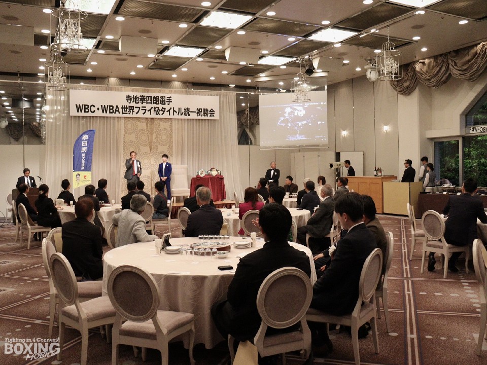 WBA(世界ボクシング協会)・WBC(世界ボクシング評議会)フライ級2団体統一王者の寺地拳四朗(33=BMB)が6日、大阪・千里阪急ホテルクリスタルホールで開かれた、拳四朗関大後援会主催の「タイトル統一祝勝会」に出席し、関係者に感謝の気持ちを伝えた。