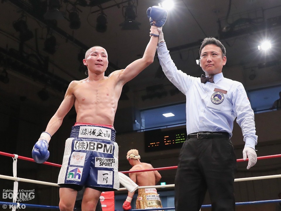終始、試合をコントロールした富岡は、「ジャブが当たるのはわかっていたが、今後、上位選手と戦っていく上で、パンチが強い関根選手に近距離でも戦えることを証明したかった。早く試合が来てほしいと思うくらいキツい練習をしている。3月に結婚して初めての試合なので、勝てて良かった」と、大粒の汗を拭いながら笑顔を見せた。