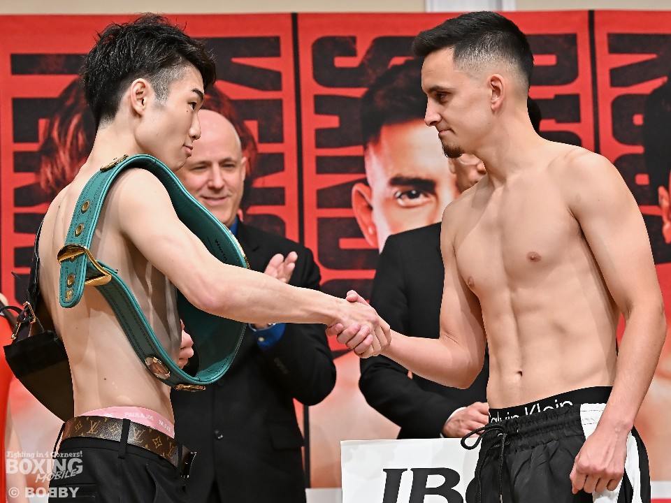WBA(世界ボクシング協会)・WBC(世界ボクシング評議会)フライ級2団体統一王者の寺地拳四朗(33=BMB)と挑戦者のリカルド・ラファエル・サンドバル(26=米)が29日、横浜ベイシェラトンホテル&タワーズで前日計量に臨んだ。