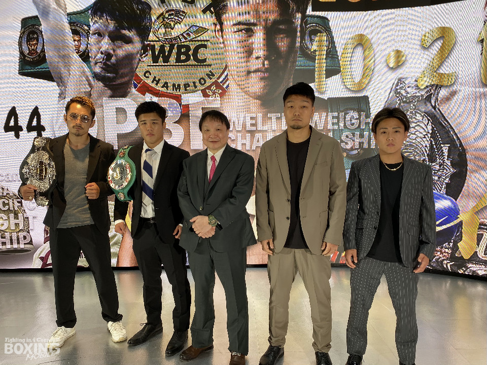 OPBF東洋太平洋ウェルター級タイトルマッチの発表会見が20日、東京ドーム内bule-ing!で行われ、王者の田中空(24=大橋)と挑戦者で同級3位の坂井祥紀(34=横浜光)が意気込みを語った。