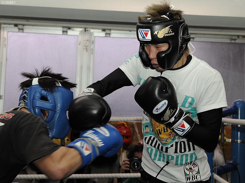 公開練習で佐藤は、同門のバンタム級6回戦・中村雅敏をパートナーに、2ラウンドのスパーリングを行った。
