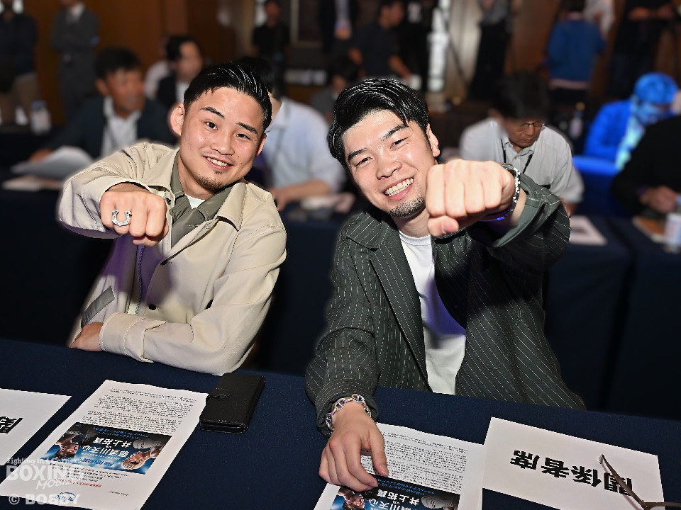 今年現役を退いた元世界4階級制覇王者の田中恒成氏と元世界2階級制覇王者の京口紘人氏と、那須川天心(27=帝拳)の弟でキックボクサーの那須川龍心(19)が25日、都内のホテルで行われた那須川天心と井上拓真(29=大橋)によるWBC(世界ボクシング評議会)バンタム級王座決定戦の会見にゲストとして記者席に着いていた。
