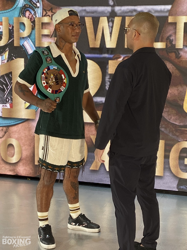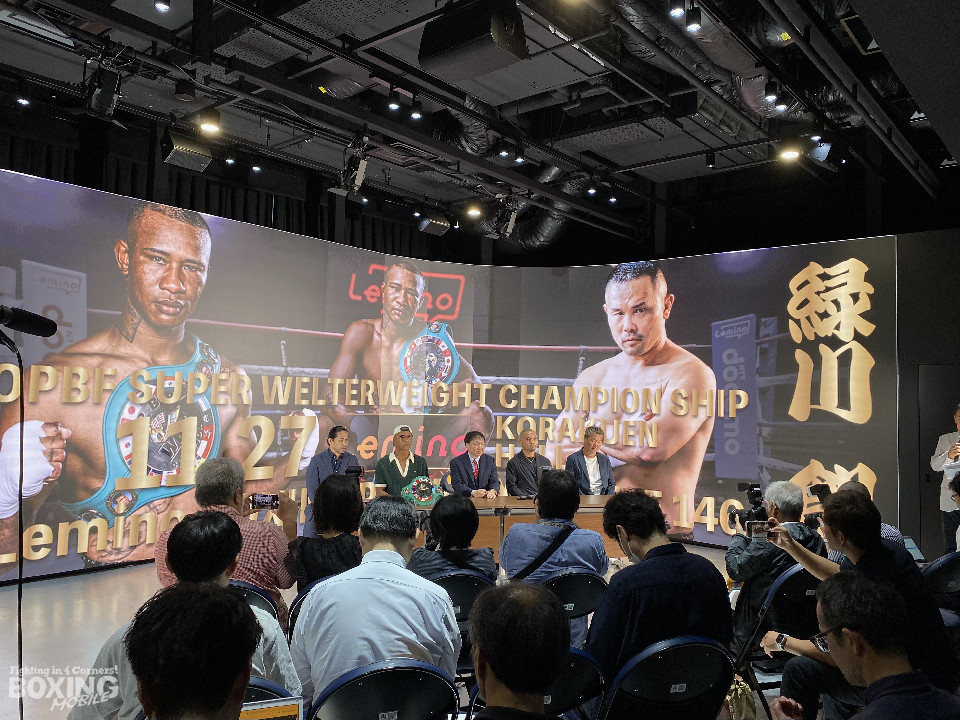 OPBF東洋太平洋スーパーウェルター級タイトルマッチの記者会見が26日、東京ドームシティ内blue-ing!(ブルーイング)で行われ、王者のワチュク・ナァツ(28=八王子中屋)と挑戦者で日本同級10位の緑川創(38=EBISU)が意気込みを語った。