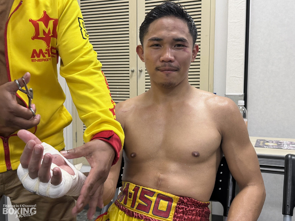 「ボディを嫌がっているのはわかったが、それでも前に出てきて、さすが世界ランカーだと思った。ただ、フェイントがなかったのがラッキーだった。勝てて良かった。それに尽きる」と大粒の汗を拭った。