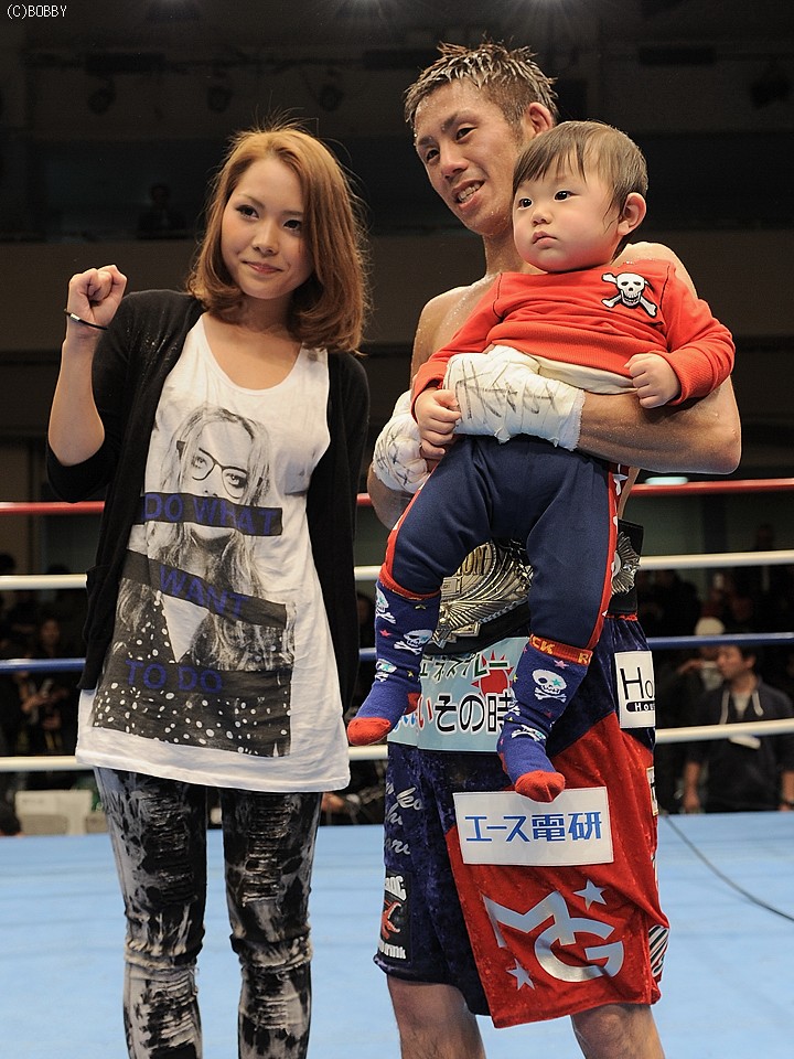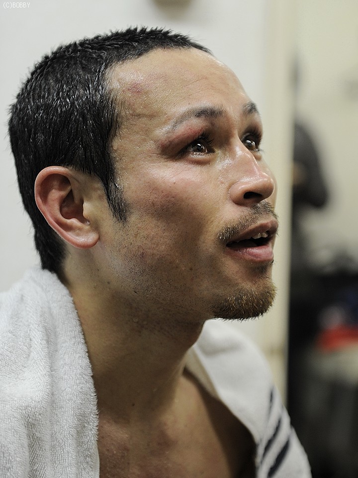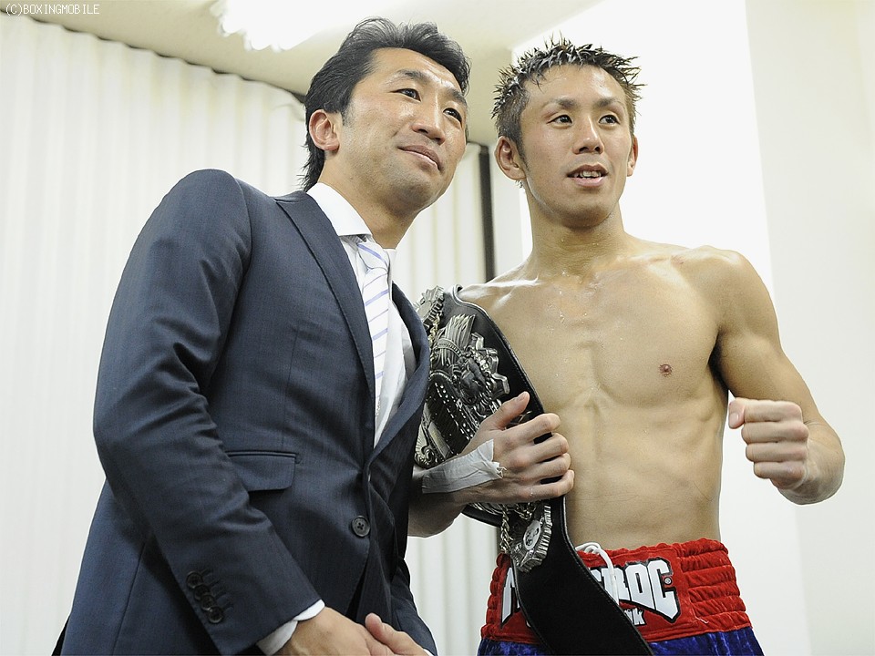 一方、新王者となった粉川の控え室では、先輩の内藤大助氏が激闘を労った。かつて、大先輩も巻いていた日本フライ級のベルトを手にし粉川は「一番ほしかったベルト。東洋王座よりも嬉しい!」と顔を綻ばせるも、試合内容については「効いたパンチはなかったが池原選手は強かった。(自分の)手数は出ていたが、ポイントでとってくれるかは分からなかった。運が良かった」と話した。