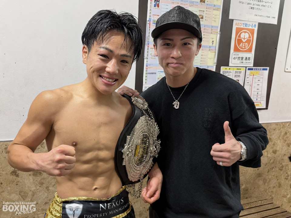 さらに「ジャスティンさん(ジャスティス・コジョトレーナー)や兄貴分のアンディ君(平岡アンディ)と一緒に練習して、このチームは世界一だと思えた。試合前も怖くなかった。リング上でも真吾さん(井上真吾トレーナー)、尚弥さん(井上尚弥)、拓真さん(井上拓真)の『このままのペースでいい』という声が聞こえた」と、大橋ジムの仲間たちの支えに感謝を述べた。