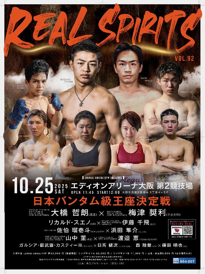 試合は、明日(25日)、エディオンアリーナ大阪第2競技場で開催される「REAL SPIRITS VOL.92」のメインイベントで行われ、その模様はYouTubeチャンネル「BOXING REAL」でライブ配信される。