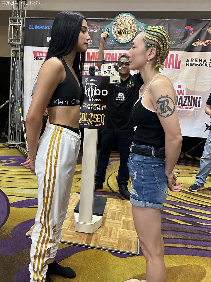 メキシコ・エルモージョで行われるWBC世界アトム級タイトルマッチの前日計量が24日(現地時間)に行われ、挑戦者の葉月さな(41=白銀)と王者カミラ・サモラノ(17=メキシコ)がともにリミットの46.2kgでパスした。会場はホテル・アライサ・イン(Hotel Araiza Inn)。