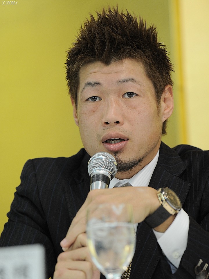 粟生&山中と共に会見を行った長谷川穂積は、現在の体調を尋ねられ「12月に怪我をして復帰戦が延期になったが、今はコンディションも良い状態です。相手のビデオがないので、どんなタイプかは分かりません」と笑顔を見せた。