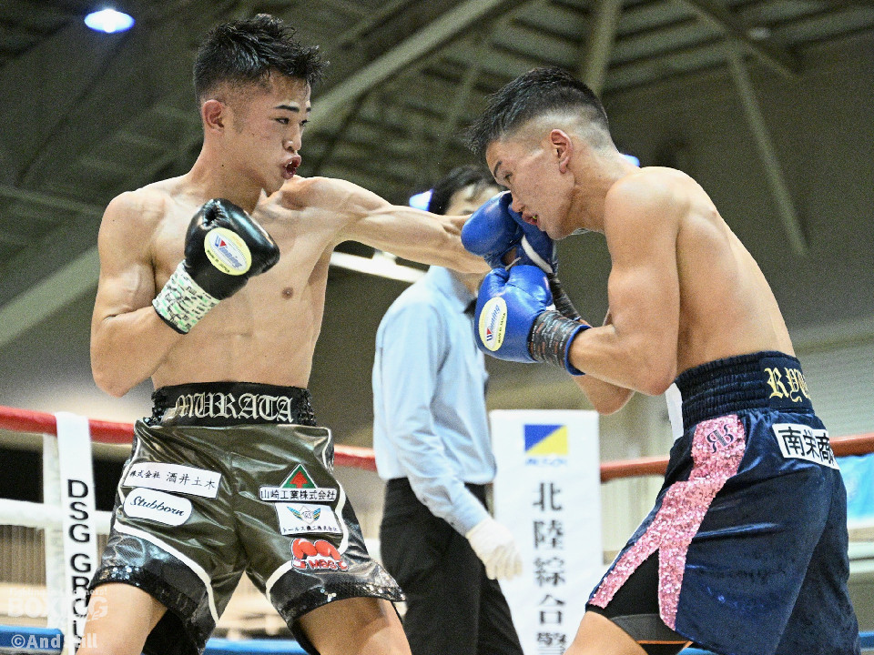 日本ユース・スーパーフライ級王座決定戦が16日、石川県産業展示館3号館で開催された「拳の嵐」のセミファイナルで行われ、日本同級14位の村田碧(21=松田)と、森脇龍星(21=KWORLD3)が第6代チャンピオンの座を争った。