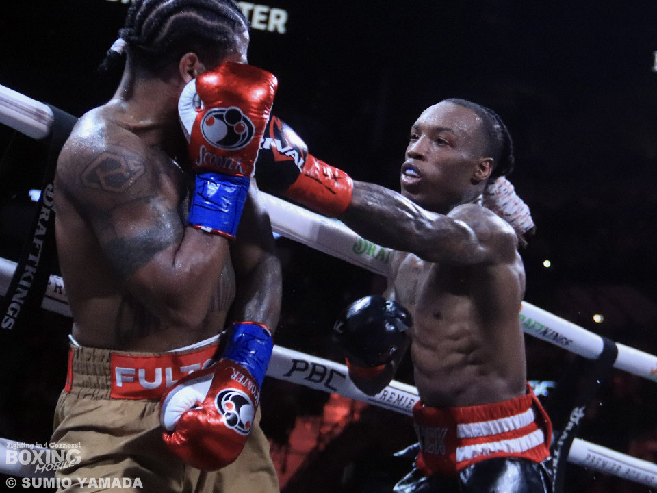 初回はフェイントを交えながら、互いに様子を探る立ち上がり。フォスターがキレのあるジャブを突きながら前へ出ると、フルトンもガードを固めつつ、隙を見てジャブを返した。4回から8回にかけて、フォスターはサウスポーにスイッチし、鋭い左ストレートを突き刺していく。中盤は、逆にフルトンが前へ出る展開となり、フォスターが再び右構えに戻すと、フルトンは上下にフックを散らしながら攻勢をかけた。11回、フォスターが再度サウスポーに構えると、サークリングを多用して距離を取る。一方のフルトンも最後まで追い続け、両者の駆け引きが続いたまま、試合は終了した。