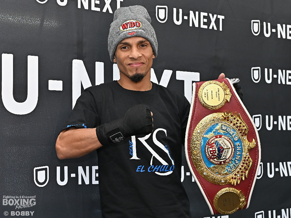 WBO(世界ボクシング機構)ライトフライ級王者のレネ・サンティアゴ(33=プエルトリコ)が11日、都内ジムで練習を公開した。サンティアゴは12月17日(水)、両国国技館で開催される「U-NEXT BOXING.4」で、WBA(世界ボクシング協会)同級王者の高見亨介(23=帝拳)と王座統一戦を迎える。