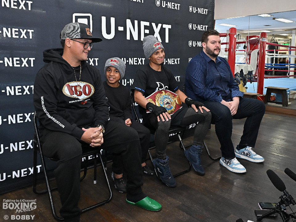 サンティアゴは今年3月、岩田翔吉(29=帝拳)を下して王座を獲得。以降、王者としての磨きをかける中で迎える統一戦となる。今回は家族を伴って来日し、公開練習には次男のジェイリエル・サンティアゴ君(9)も姿を見せた。