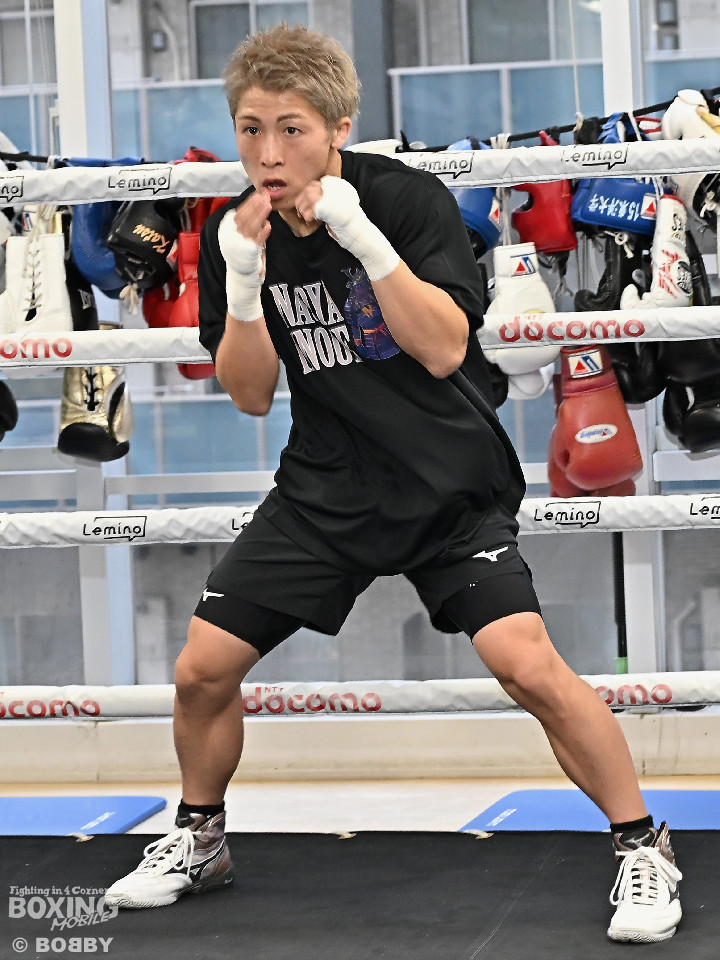 「今朝も映像を見た。ピカソの距離をインプットして、自分の距離でも相手の距離でもどちらも想定して準備し、ダラダラ打ち合う気はない。前線のムロジョン戦では判定になってしまった。今回は本来のスタイルで試合を組み立て、最後にフィニッシュ。KO決着を狙いにいく」と、力強く語ると、試合決定直後から囁かれたピカソの力量不足について記者に問われると「前回のムロジョンや、来年の中谷選手に比べられると仕方ないが、ピカソを力不足とは思わない。KOで勝利することは常に背負って試合をしてきたので、今回の試合も同様」と語ると、来年の対決が期待される中谷潤人(27=M・T)については「ファンは意識して見ると思うが、今回、双方の調子が悪くても本番は来年。来年の5月に向けてのモチベーションの作り方は相手も違う」と、目前の試合への意識の高さを伺わせた。