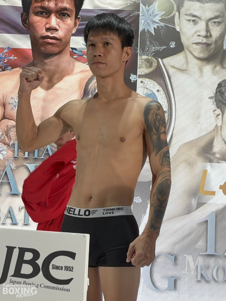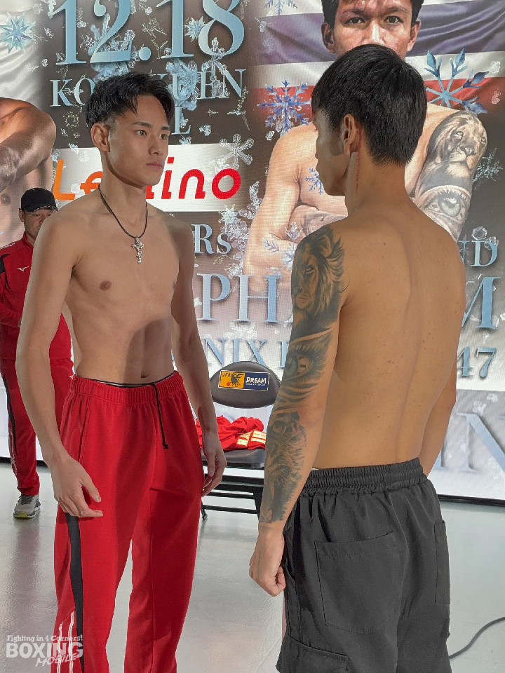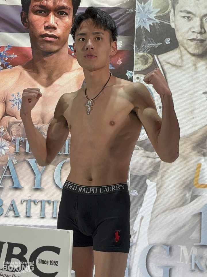 坂井は53.3kgで計量をクリアすると、「バッチリ仕上がった。昨日の時点で一度バンタム級リミット(53.5kg)まで落ちた。日本チャンピオンや井上拓真さんとスパーリングをしたり、同時期に入門した田中空君(OPBF東洋太平洋ウェルター級王者)がチャンピオンになったことで、自分もタイトルを目指していきたい気持ちが芽生えた」と、期待を背負う若武者の自覚を口にした。