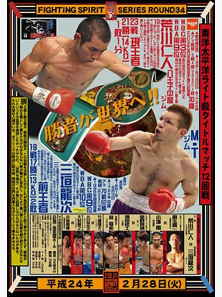 2月28日(火)、後楽園ホールで開催される「ファイティング・スピリッツシリーズ」東洋太平洋ライト級タイトルマッチ、王者・荒川仁人(八王子中屋)VS挑戦者・三垣龍次(M・T)の"アジア最強決定戦"の観戦チケットを、抽選でペア3組6名様(A指定席9,000円券)にプレゼント!!
