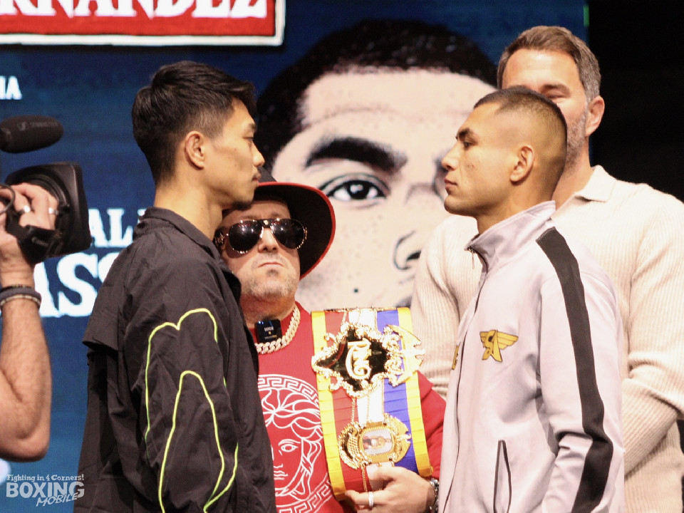 また前日には、米リング誌の企画で世界スーパーバンタム級4団体統一王者・井上尚弥(32=大橋)との対談も実現。「プロモーションとして盛り上がるのは良いこと。ただ、今はヘルナンデス戦に集中している」と冷静な姿勢を貫いた。