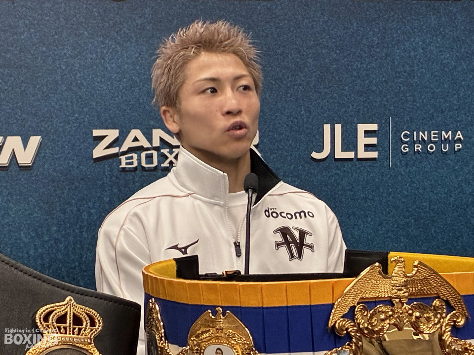 注目された来年5月の東京ドーム決戦構想についても言及。中谷潤人(27=M.T)とのスーパーファイトを巡り、前日計量ではフェザー級転向による5階級制覇の可能性にも触れていたが、会見では「自分から呼びかけたので、やる気はある。今日、お互いに勝ったので“やりましょう”と話した。会長にもそう伝えた」と明言。ただし「フェザー級にも上げたいが、それは5月ではない」と含みを持たせた。