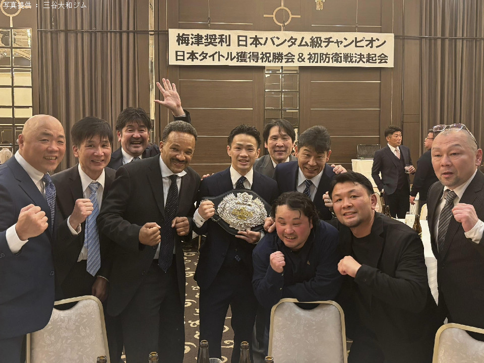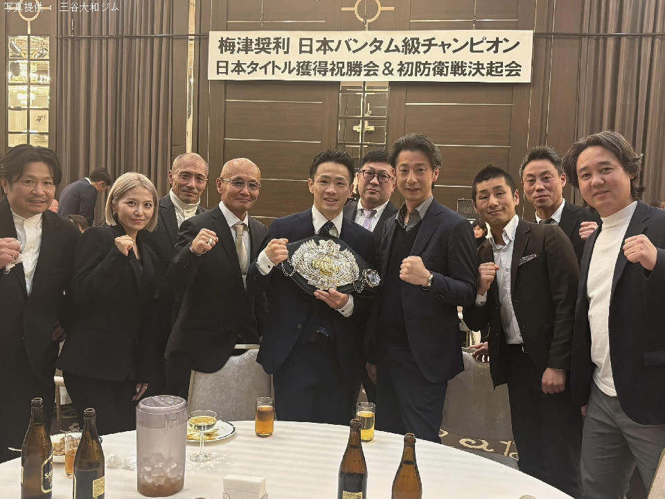 梅津奨利、日本タイトル祝賀会&初防衛戦決起会