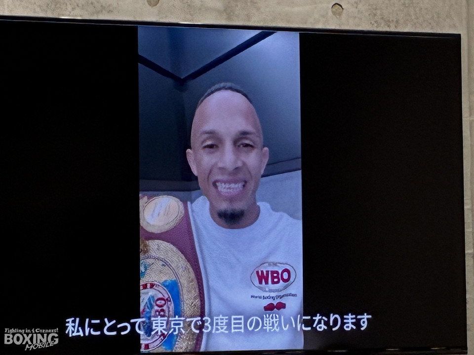 リモート会見に臨んだサンティアゴは「元世界チャンピオンの谷口選手との試合が嬉しくて待ち遠しい。なぜなら、東京で自分こそが統一王者であることを再び証明することができるからだ。私自身や家族、チームのオールスターボクシングにとって非常に大きな意味を持つ。谷口選手という偉大な相手に誇りを持ってタイトルを防衛する」と自信を示した。