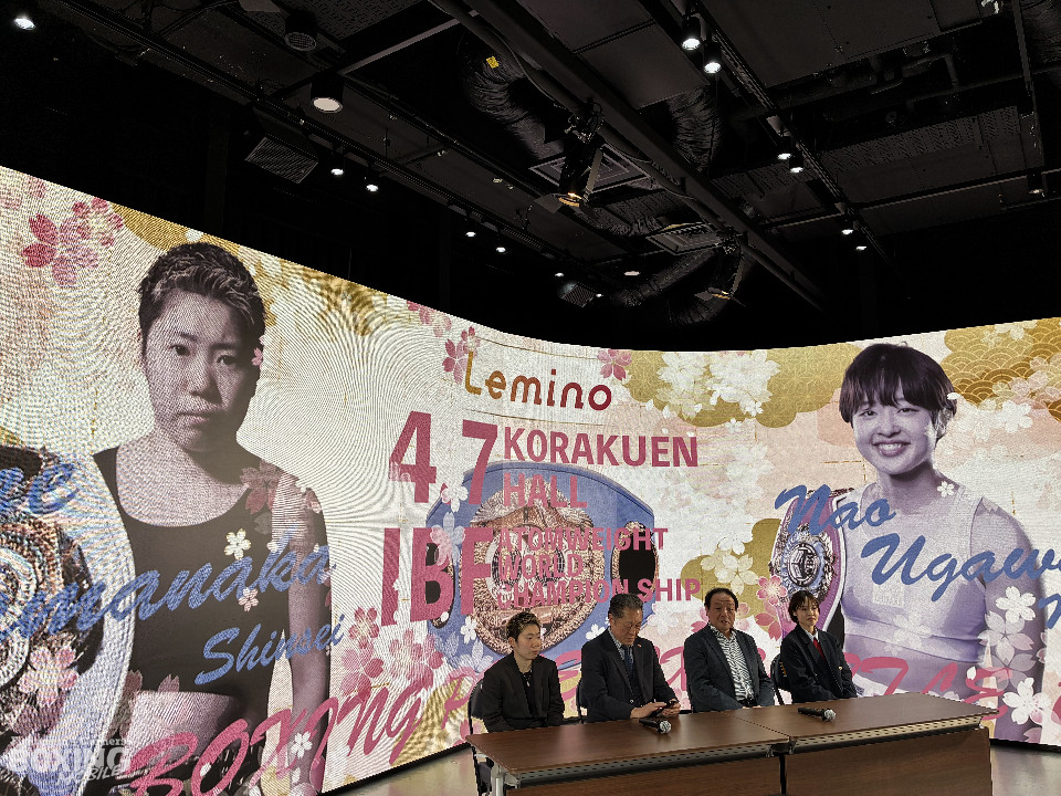 IBF(国際ボクシング連盟)アトム級王座決定戦の発表会見が18日、東京ドームシティ内blue-ing!(ブルーイング)で行われた。元王者で同級1位の山中菫(24=真正)と、同級3位の鵜川菜央(30=三迫)が出席し、世界のベルトに懸ける決意を語った。