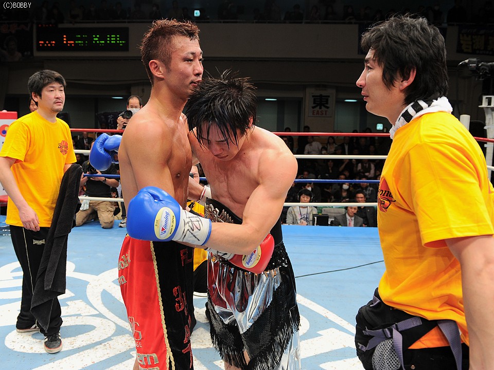 試合後、初防衛に失敗した和宇慶は「相手にパンチがあった。初めてぶっ倒された。俺が弱かった、スミマセン」と控え室で頭を下げていた。