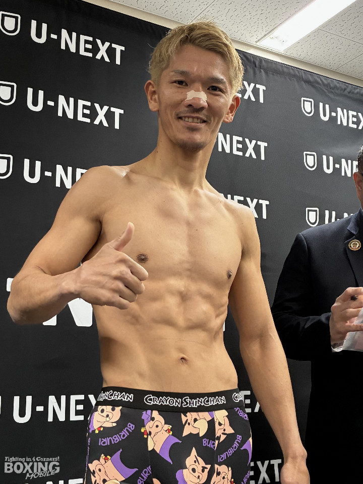 36戦目を迎える尾川は、契約体重ちょうどの59.8kgで計量をクリア。「年齢的なこともあるが、勝って次につなげていくしかない。我慢と言えば我慢だが、勝ち続けていくことで世界が見えてくる。しっかり仕上げてきたので結果を出す」と、淡々と決意を口にした。