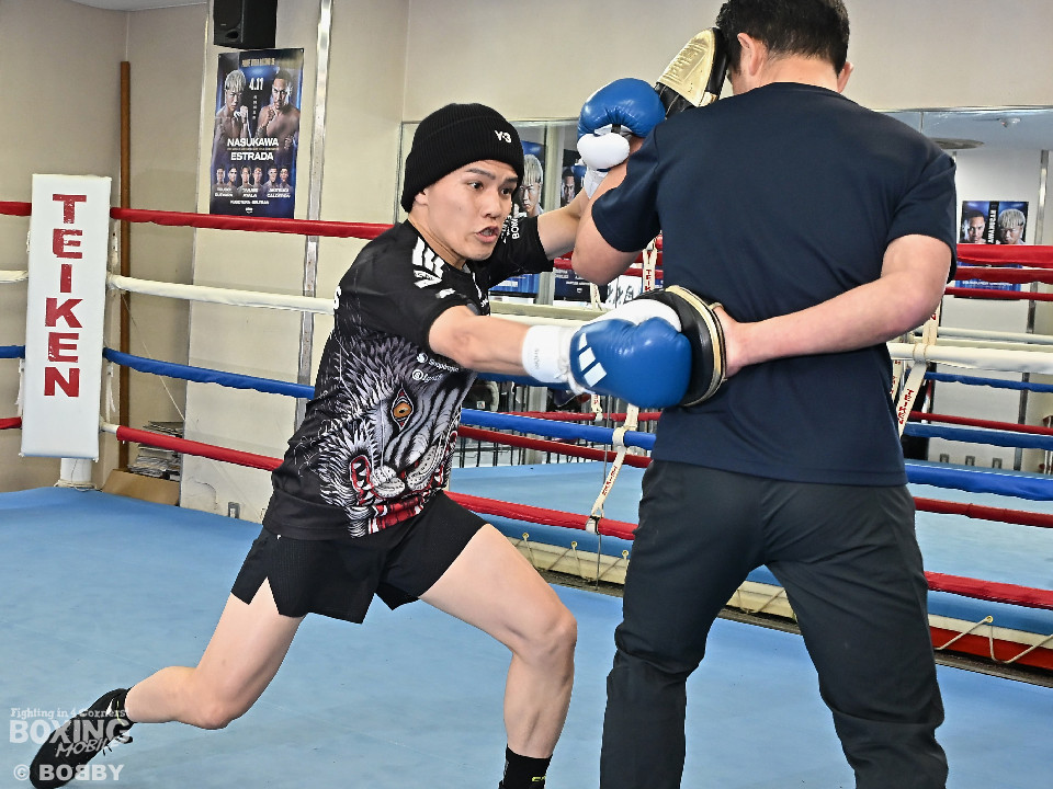公開練習ではシャドーボクシングの後、ミット打ちを披露。緩急をつけながら寸止めでフォームを確認し、最後は鋭い右ストレートを叩き込んだ。終始落ち着いた動きの中に、試合をコントロールするための精度の高さが際立っていた。