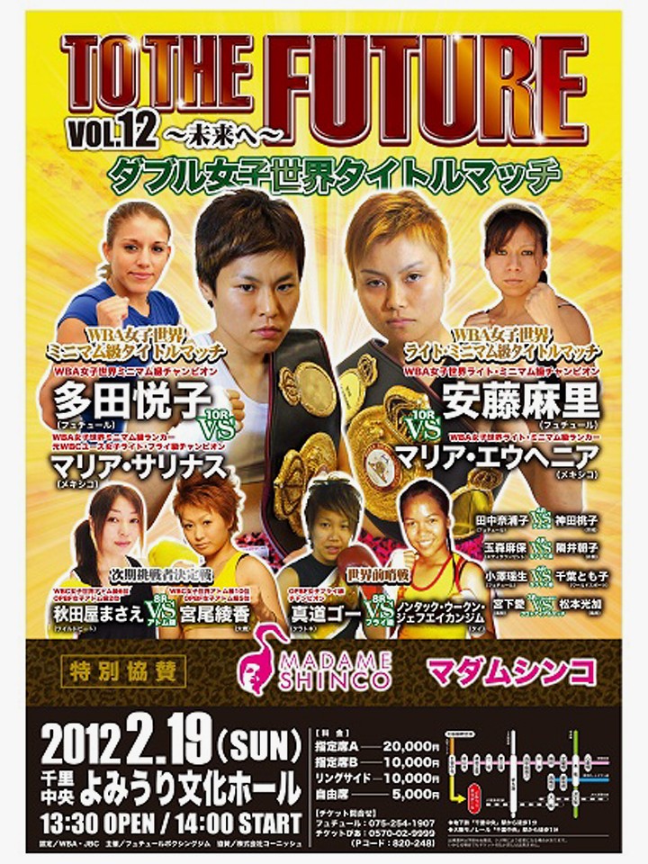 19日、よみうり文化センターで開催される「To the Future 未来へ Vol.12」のメインイベントで、WBA女子世界ミニマム級王者"浪速乃爆弾娘"多田悦子は7度目の防衛戦として、"メキシコの新鋭"マリア・サリナスを迎え撃つ!!