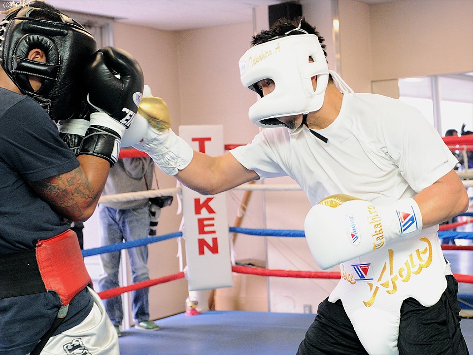 サウスポーの指名挑戦者ターサクを迎え撃つ王者・粟生は、左構えのパートナー2人をフィリピンから招聘しており、パートナーを3ラウンド交代で合計6ラウンドの公開スパーリングを行った。