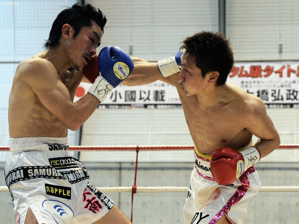 1R早々、王者・小國以載は挑戦者・大橋弘政の接近戦に対し、左ジャブで距離を保つと右ボディー右ストレートを鮮やかに決めダウンを奪うが、小國はこのラウンドに決めきれず。一方の大橋は中盤まで接近出来ず王者のペースで試合が進む。6R終了時点の採点がアナウンスされ、大差をつけていることが分かると小國は一転して接近戦に応じ9Rまで壮絶な打ち合いとなる。しかし、8R終盤に受けた偶然のバッティングによる小國の左目上の負傷が悪化、ドクターストップという呆気ない結果となり場内騒然とヤジの飛ぶ後味の悪い試合となった。規定により9Rまでの判定3-0の圧勝で王者が初防衛戦を飾った。