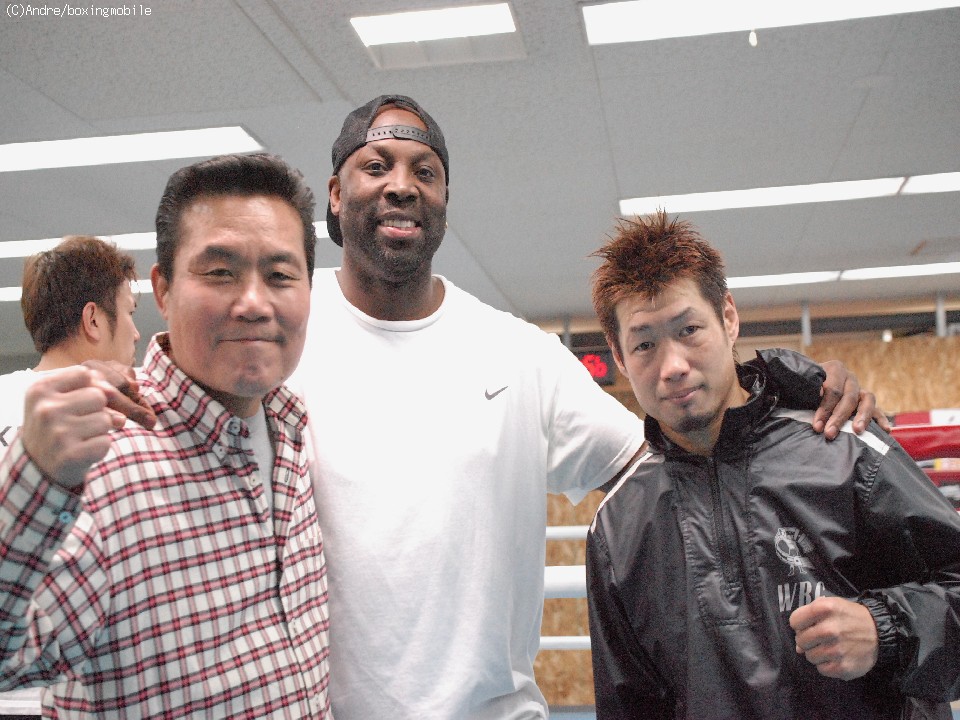 21日、試合まで2週間となった長谷川穂積(真正)がスパーリングなど調整も佳境を迎える中、関西の大物芸人(元日本Sウェルター級1位)の激励を受けた。気心の知れた二人は時折笑顔でボクシング談義に花を咲かせた。