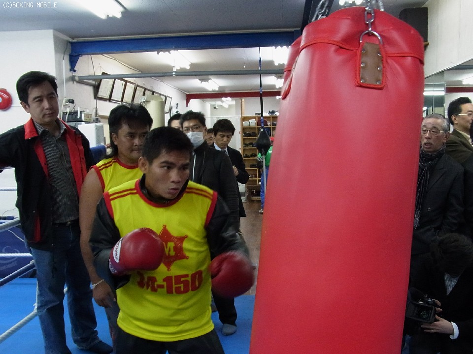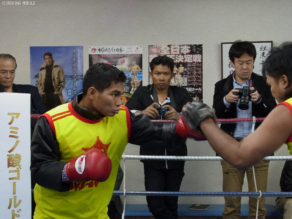 4月4日横浜アリーナにて休養王者・清水智信(金子)とWBAスーパーフライ級王座統一戦に臨む、正規王者テーパリット・ゴーキャットジム(タイ)が都内・勝又ジムで練習を公開した。