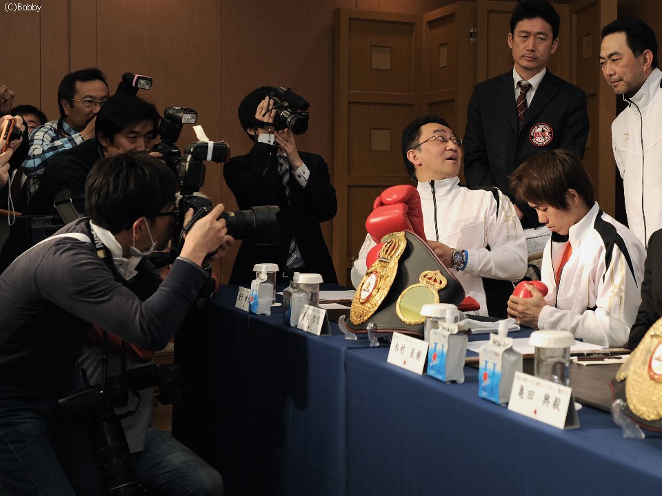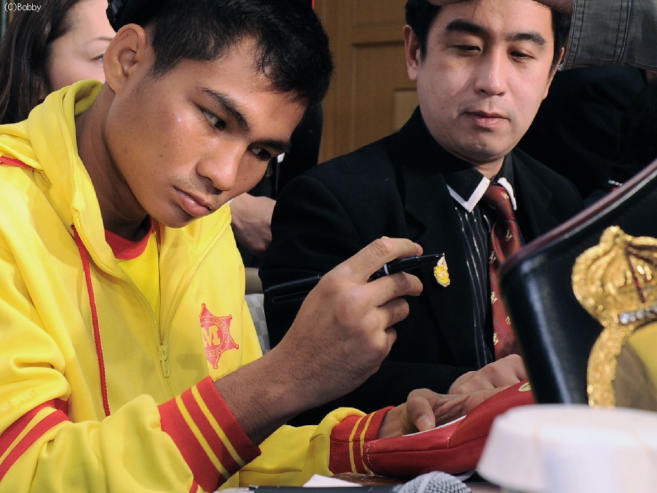 4月4日に横浜アリーナにて行われるWBA世界スーパーフライ級王座統一戦の調印式が水道橋の東京ドームホテルで行われた。