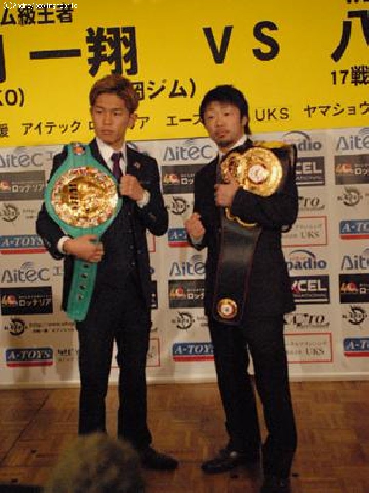 一方、八重樫は「井岡選手はパーフェクトに近いボクサー」と、WBC王者をたたえた後「今回、僕は脇役の様なので脇役が主役を食うところを見せたいと思う」とこちらも統一戦に闘志を燃やした。