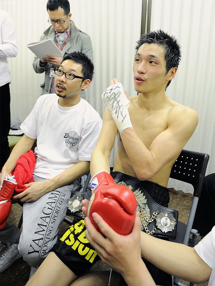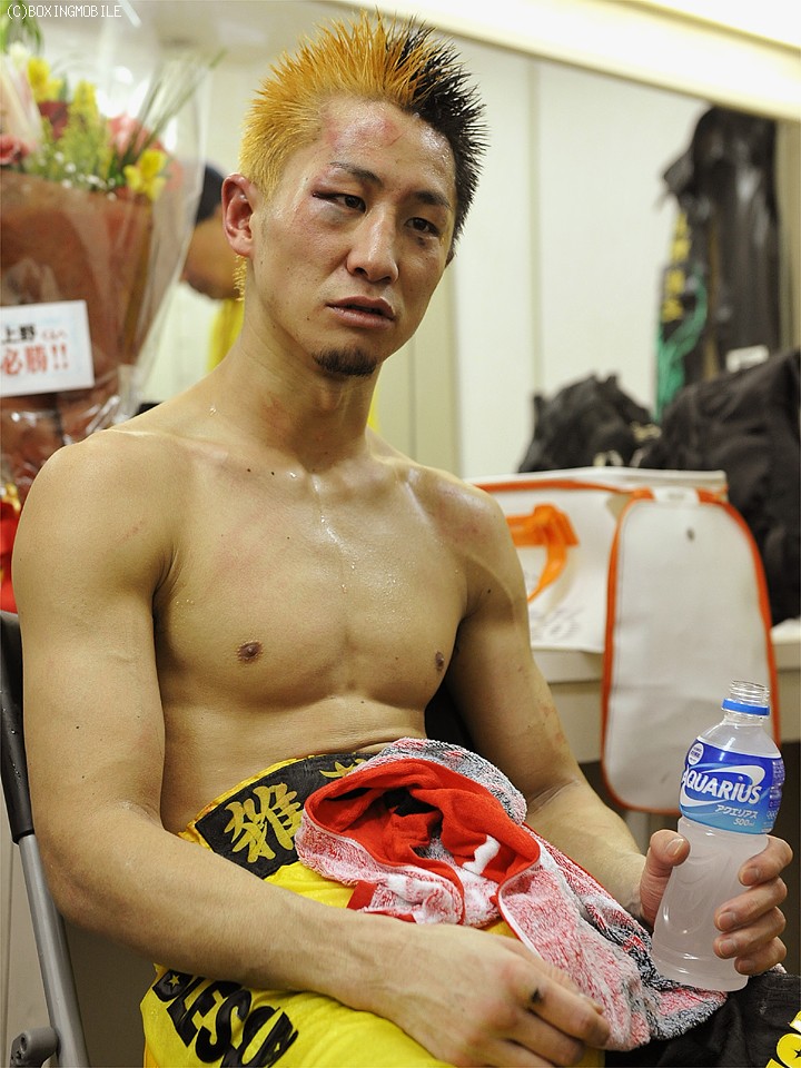 王者・天笠からダウンを奪うも、3度目の正直とならず無念の敗退となった上野は、ドクターチェック後に控え室で会見を開いた。「天笠選手のパンチは思った以上に"ヤバイ!!"と感じた。もっと右を当てたかったが、天笠選手は自分のもらわない距離を知っている。ジャブの刺し合いをしたかったが、そのジャブが重くて前に出られなかった。今までで一番パンチがあった」と試合を振り返った。