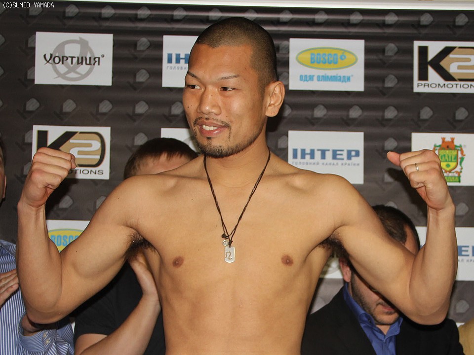ウクライナで開催されるWBA世界ミドル級タイトルマッチ、王者ジェナディ・ゴロフキン(カザフスタン)と挑戦者・淵上誠(八王子中屋)の前日計量が日本時間11日に行われ、ミドル級リミット(72.57Kg)を王者72.5kg、淵上72.1kgで無事パスした。