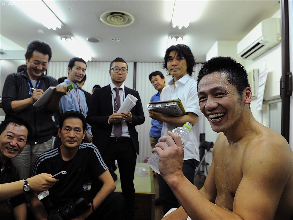 4年振りの防衛戦を完勝で飾り、日本ミドル級王者として確かなる一歩を踏み出した湯場は控え室で会見を開いた。「今は良い環境で練習ができ、充実している。決定戦が苦しい内容だったし、初防衛戦も苦戦すると思ったが…。試合に対し"負けたら終わり"のプレッシャーもあり、変なテンションだった」と王座防衛もプレッシャーとの戦いであったと告白。挑戦者・氏家の印象を求められ「僕の一番苦手な戦いをする。これまで僕が負けたときのタイプだった。もっとガンガンくると思ったがこなかったので、カウンターを取りやすかった」とコメント。