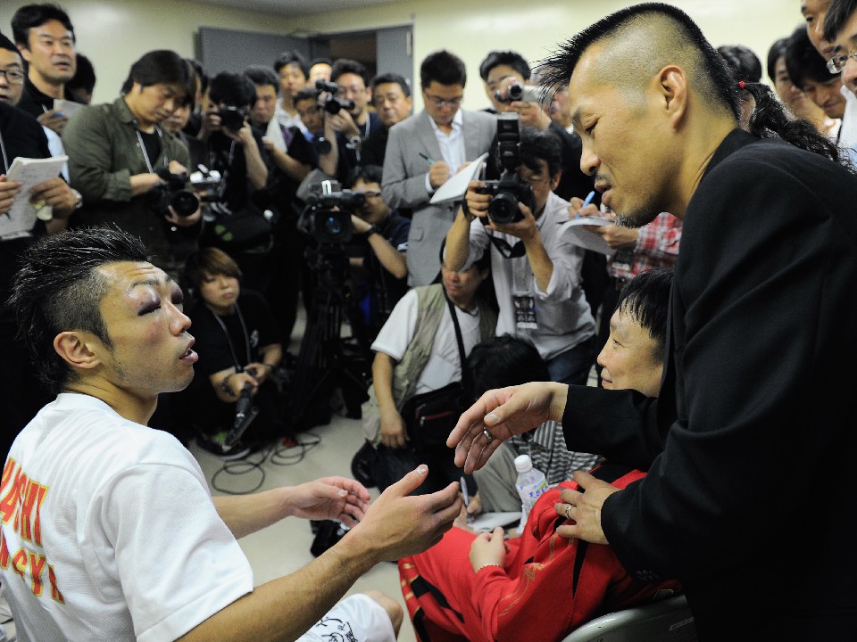 2012年6月20日、日本ボクシング史に新たな1ページが刻まれた。WBC・WBA世界ミニマム級王座統一戦。この決戦により、日本人初の統一世界王者が誕生した。激闘を終えた八重樫東(大橋)陣営が、控え室に報道陣を入れ囲み取材に応じた。