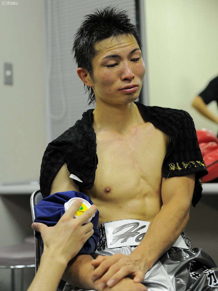 2Rのダウンについて記者から聞かれると「全然覚えてないです、立ってるつもりでした」と静かに答え「言い訳になっちゃうので嫌なんですけど、2Rのダウンで右肘を痛めちゃって、3R以降は右が出なくなってしまいました」と右肘の怪我を明かし、悔しさをにじませた。