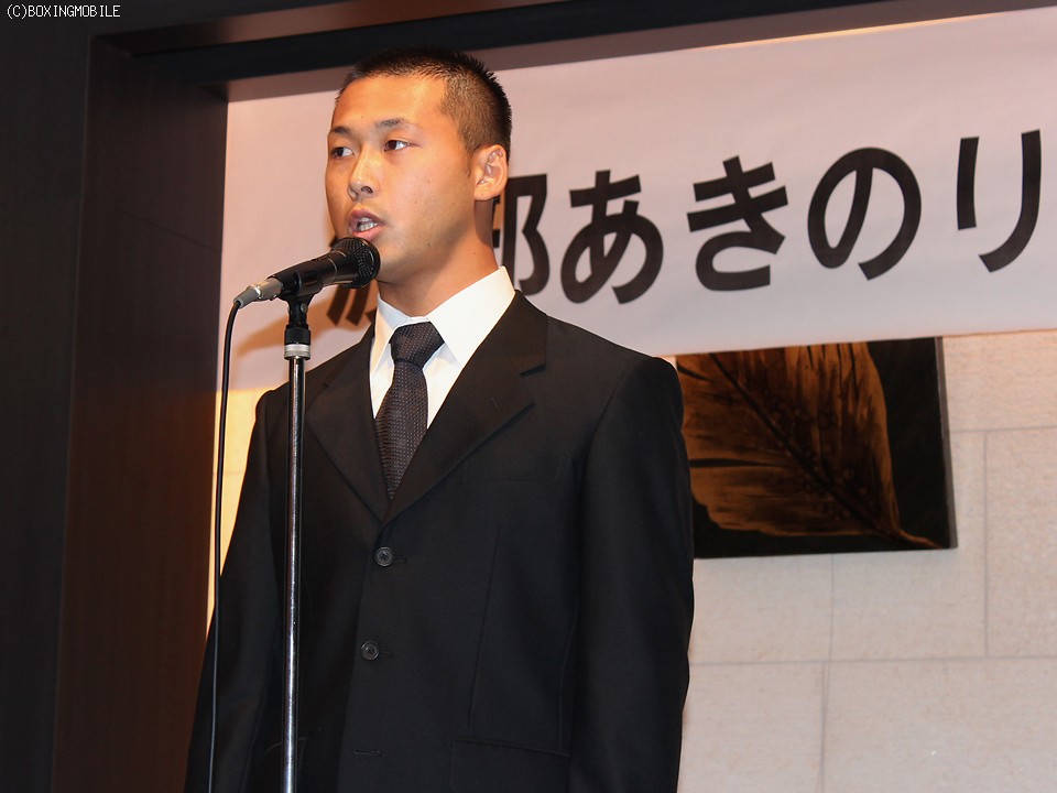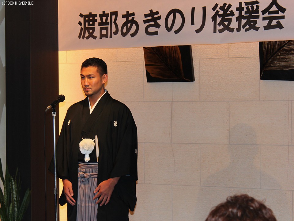 21日、埼玉県さいたま市の大宮サンパレスで、日本&東洋太平洋ウェルター級2冠王"倒し屋"渡部あきのり(協栄)の後援会発足式が催された。