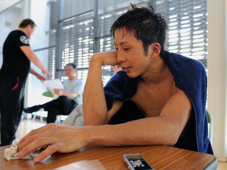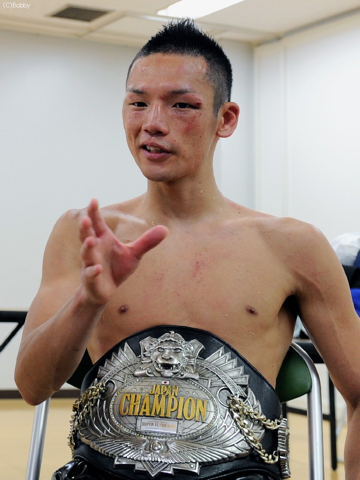 挑戦者・角谷は開口一番「相手が強かったです。」とうなだれた。サウスポーとの対戦に関して「やり辛かったですね…手が出なかったです。倒しにいこうと思っていたけど、左が飛んできたので、入りにづらくなりました。」と試合を振り返った。今後はの問いに「何で負けたかわかっているんで、まだ余地があるってことなんで頑張ります。」と前を向いて会見を終えた。