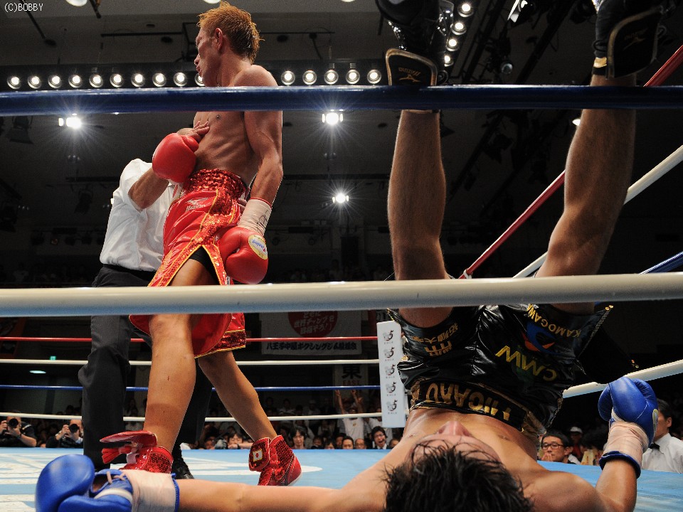 赤穂はここが勝機とダメージが残る戸部を攻め立て、最後は左フックを直撃させレフェリーストップ。8R2分58秒、会心のTKO勝利で3度目の防衛に成功した。