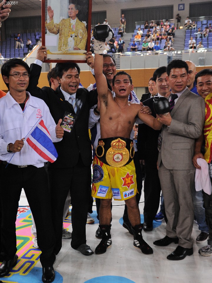1日、大阪市内で行われたWBA世界スーパーフライ級タイトルマッチ。名城信男(六島)が引退を懸けて王者テーパリット・コーキャットジム(タイ)の持つベルトに挑んだ。