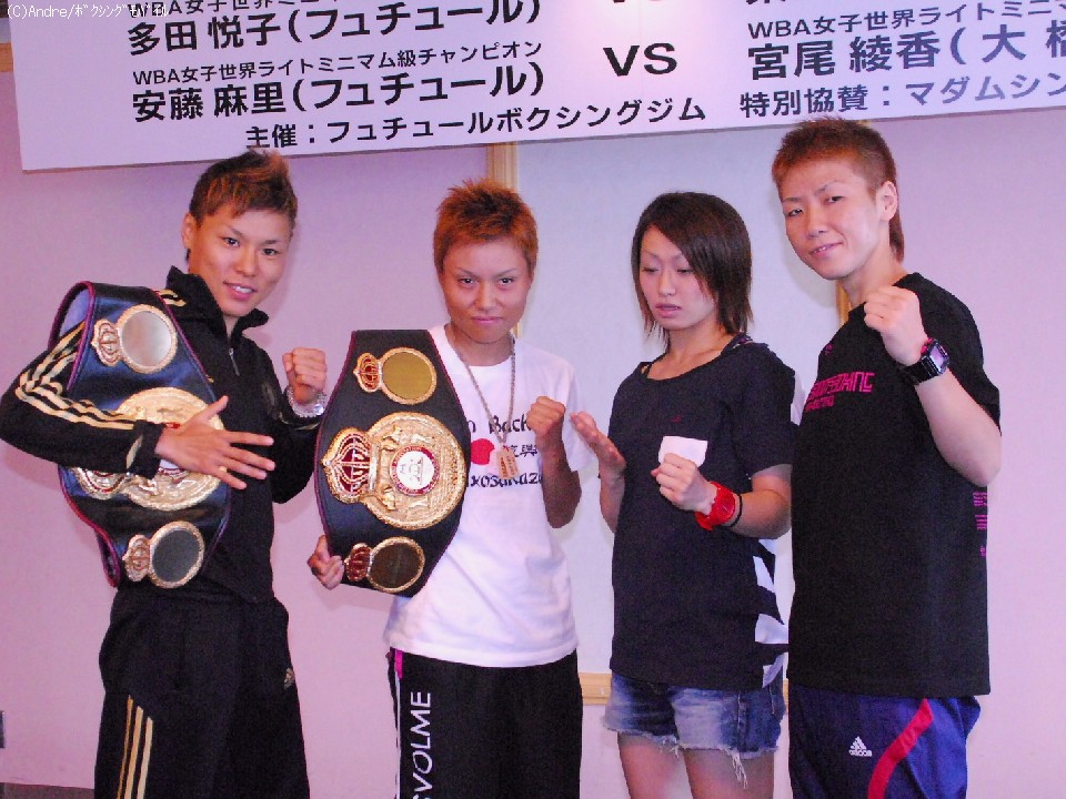 試合決定後に舌戦を繰り広げたWBA女子世界ミニマム級王者・多田悦子(フュチュール)と挑戦者・柴田直子(ワールドS)が顔を合わせた。