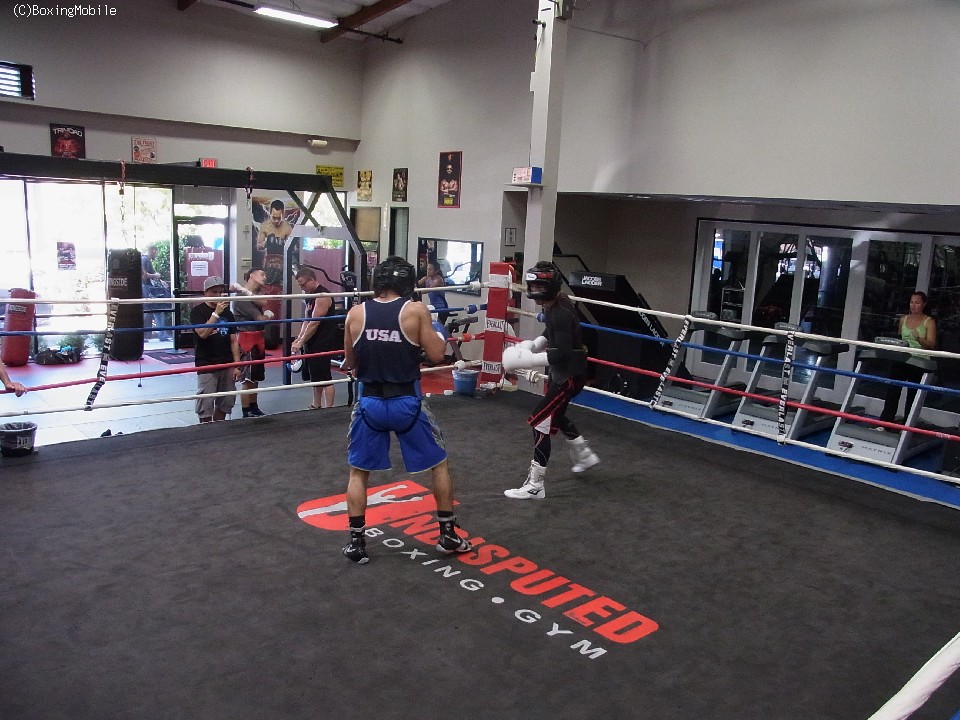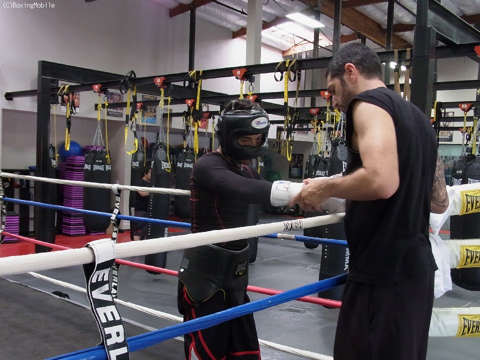 スパーリングパートナーの1人は20歳のサウスポー、エリック・デ・レオン選手。来月にもプロデビュー戦が予定されている若手だが、アマチュアでは初の3年連続、全米ゴールデングローブチャンピオンになるなど将来有望な選手もスパーリングパートナーとしてドネアと激しい打ち合いを見せた。