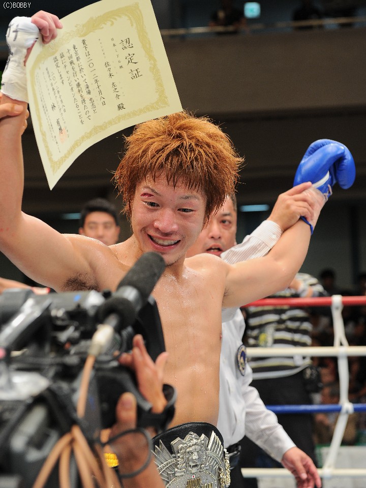 日本重量級戦線を牽引し、その名を日本ボクシング界の歴史に刻んだ"覇王"湯場を打ち砕き、日本ミドル級新王者となった佐々木は満面の笑みで会見を開いた。「3回くらいで右ストレートをもっと当てにいきたかった。4回に右ストレートの後に体勢を低くすることで距離を詰められたし、左ストレートを避けられた。湯場さんは"雲の上の存在"だったが、会長達から"勝てる!!"と言われ気持ち的に乗っていた」と試合を振り返った。